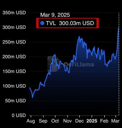 Sei网络的总锁仓价值(TVL)已突破3亿美元,其中稳定币流入达到历史峰值。这一增长表明投资者对Sei DeFi的信心增强,生态内资金流动性显著提升。